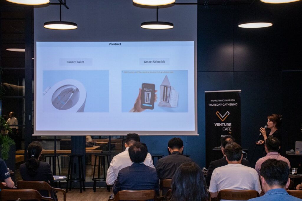 さらに、尿データに加え、ウェアラブルや家庭用IoT機器から得たヘルスデータを統合し、AIが食事や運動のパーソナライズされた提案も可能に。将来的にはスマートベッドなどを組み合わせたスマートスペース構想を進め、家庭内でのリアルタイム生体シグナル監視を通じた生活習慣・リスク管理の実現を目指しています。Tak氏は「医療機関や研究開発機関、保険会社などとの提携を進めたいので協力してくれる方やグローバル投資家の方々とつながりたい」と述べました。