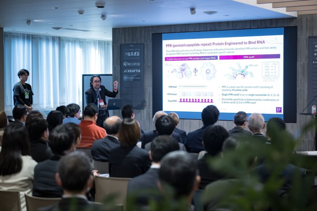 エディットフォースは九州大学農学部発のスタートアップとして、植物由来のPPRタンパク質を用いた遺伝子治療薬を開発しています。現在、筋強直性ジストロフィータイプ1(DM1)の治療薬開発を進めており、非臨床試験の最終段階にあります。