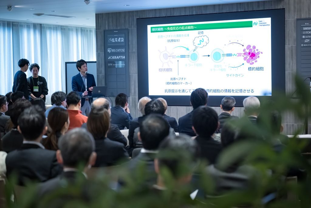 九州大学病院と直結する国内唯一のライフサイエンス特化型インキュベーション施設の開設を記念した本イベントには、PMDA(医薬品医療機器総合機構)の丸山良亮氏、オルガノイド研究の第一人者である武部貴則氏をはじめ、遺伝子治療・再生医療領域の最先端を走るスタートアップ4社が登壇。行政・VC・事業会社の審査員を交え、技術の社会実装に向けた専門性の高い議論が交わされました。